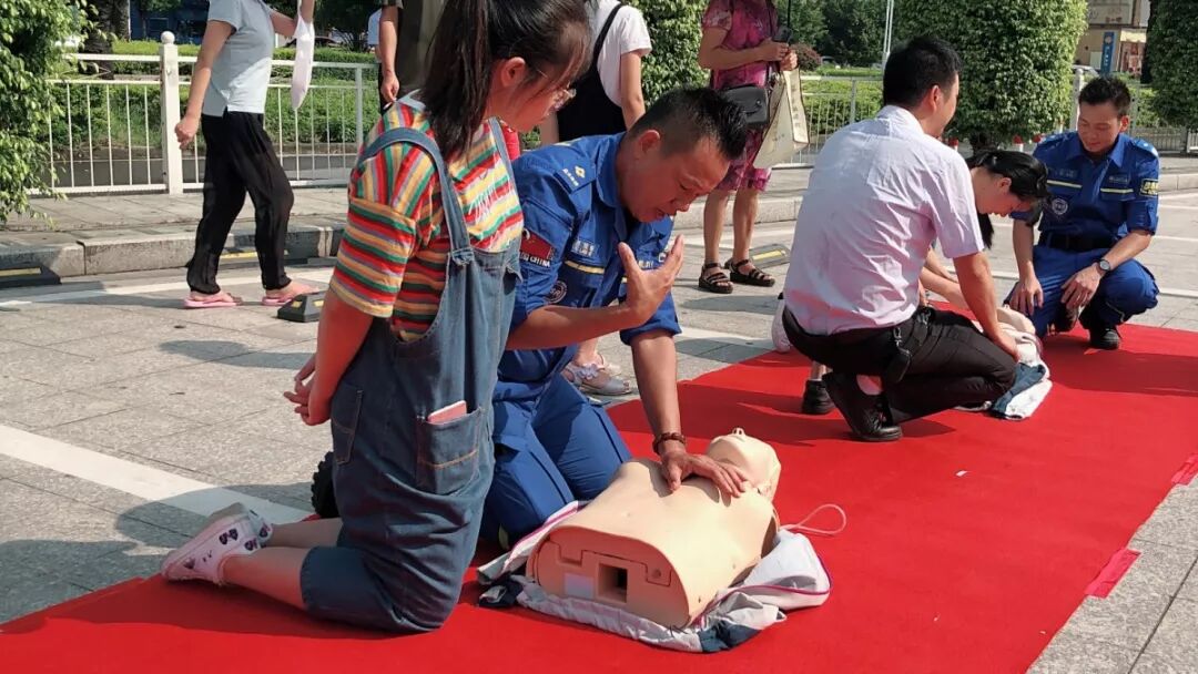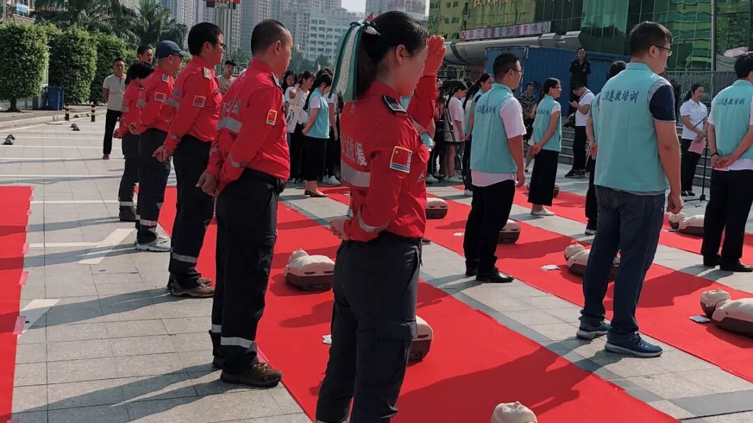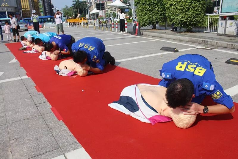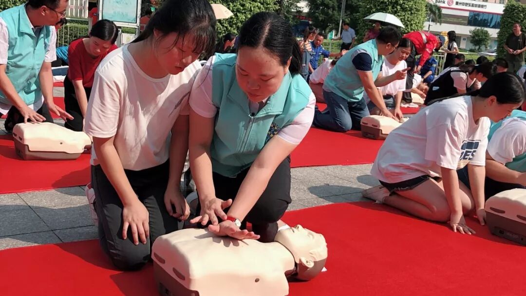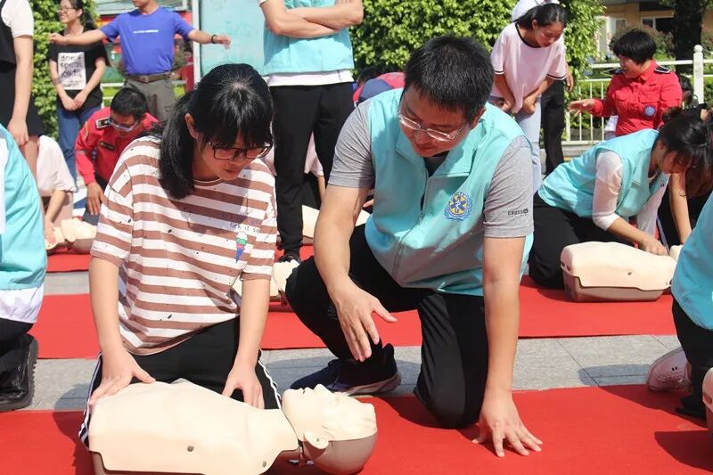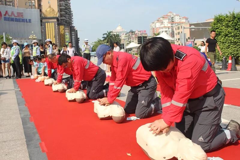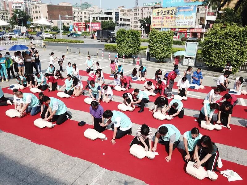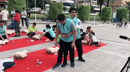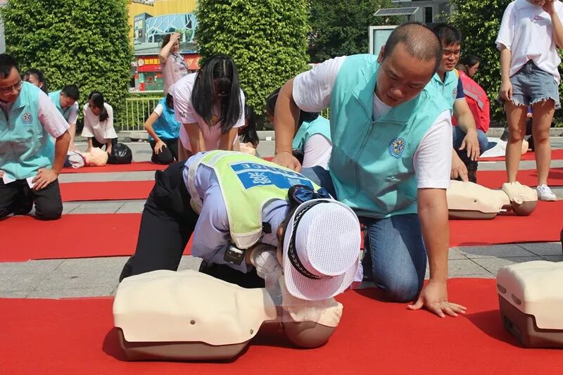 9月8日,是第十九个“世界急救日”。为了迎接这一纪念日的到来,市120急救指挥中心和仲恺分中心在星恺大剧院广场举办“仲恺高新区百人学急救”活动。由仲恺区各医疗机构的技术骨干、惠州蓝天救援队及惠州市公益救援协会组成的急救培训老师对仲恺区志愿服务队成员、区交警大队女子中队队员和周边群众开展心肺复苏术和异物梗阻的紧急处理的现场操作培训。